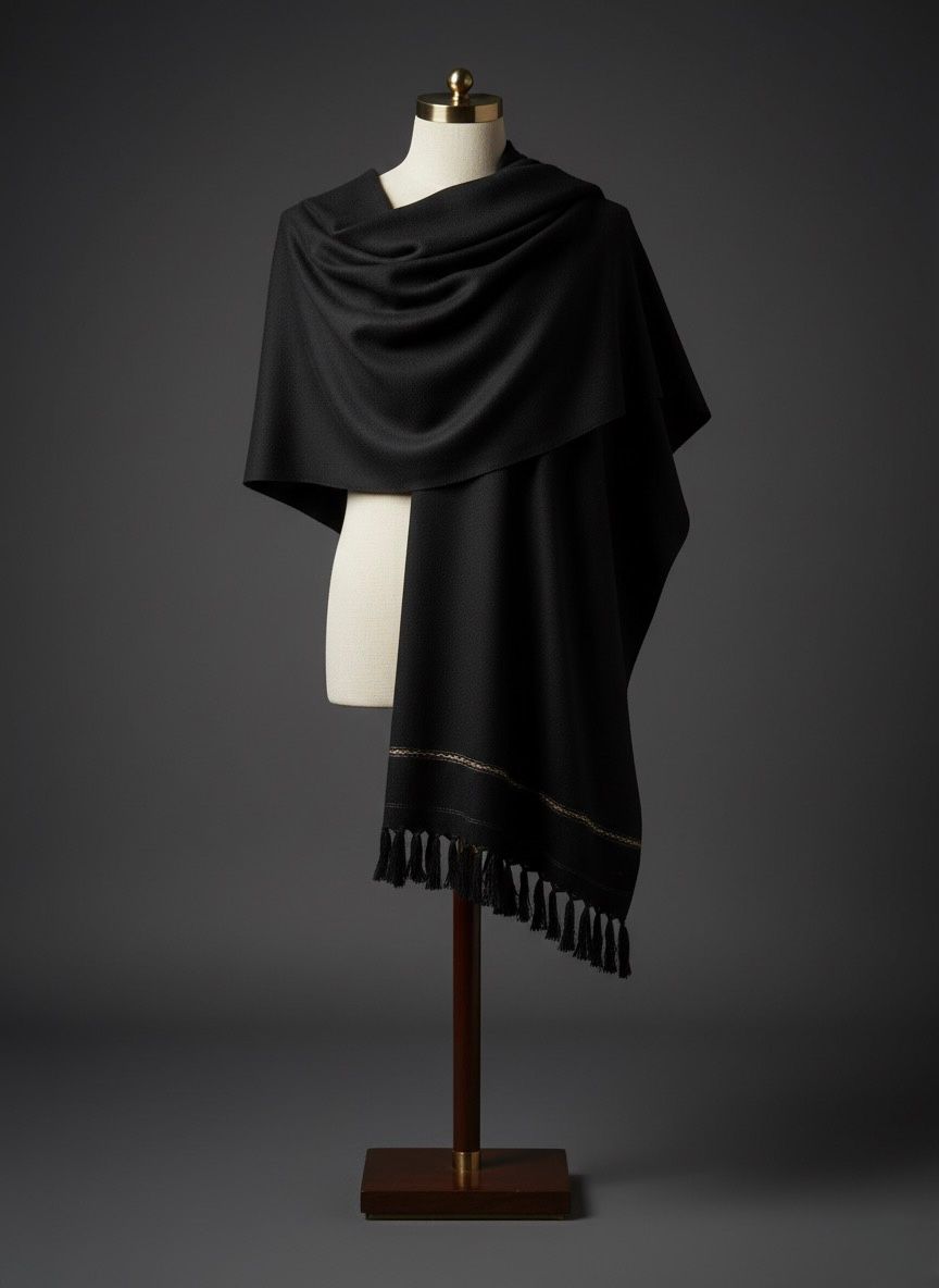 Discover the elegance of our Black Acrylic Shawl, designed for cultural events.
