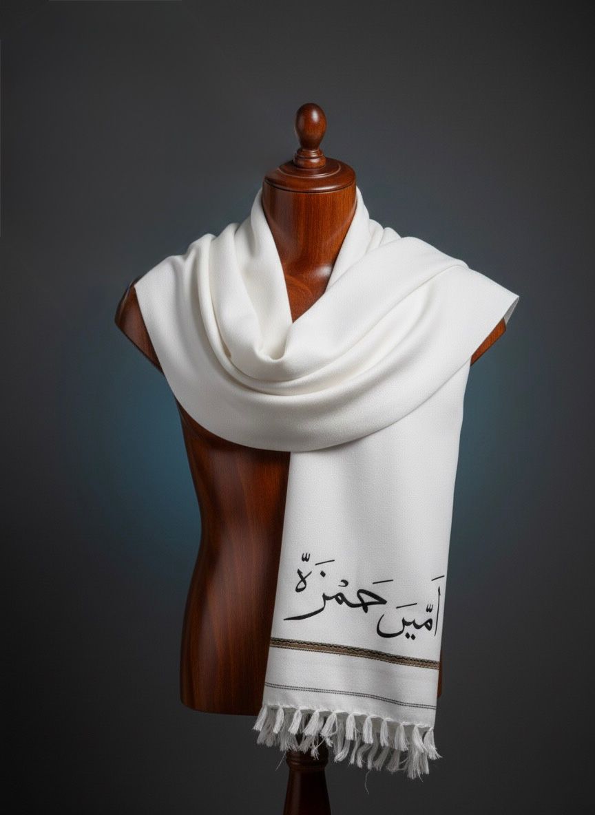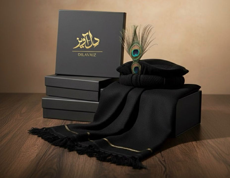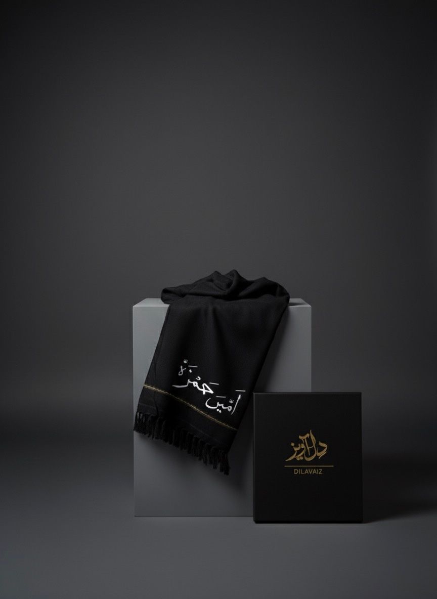 Black Wool Shawl with custom printable name, adding a personal touch to warmth and style.