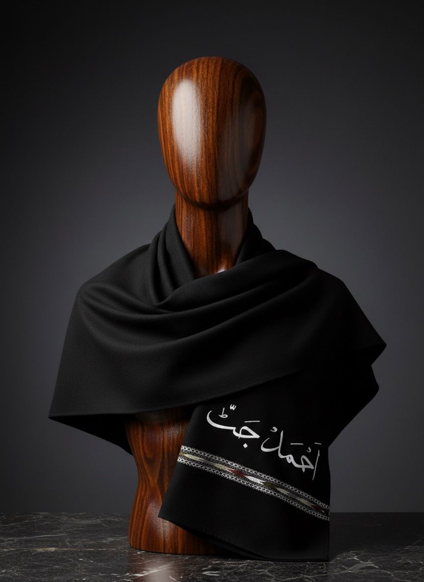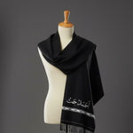 Black Pure Wool Shawl with custom printed name, perfect for cold winter days.